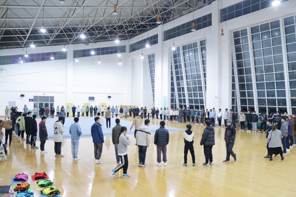 本网讯(刘思圻 邓宗超 孙文灿 彭媛媛)为了帮助同学们更好的认识彼此,增进友谊,增强班级凝聚力, 2020年11月26日晚,地理科学类一班在北体育馆二楼武术馆内地举行了第二次团日活动。本次团日活动由团支书孙文灿同学负责统筹规划安排,团支部组织委员邓宗超、素拓委员顾雨婷同学准备,宣传委员刘思圻同学宣传、记录并收集素材,由我校休闲体育专业拓展培训师李成玉、闫兴武、李若尘、黄礼杉、李锦锦、任宇豪指导培训,地理科学类一班全体同学参加。