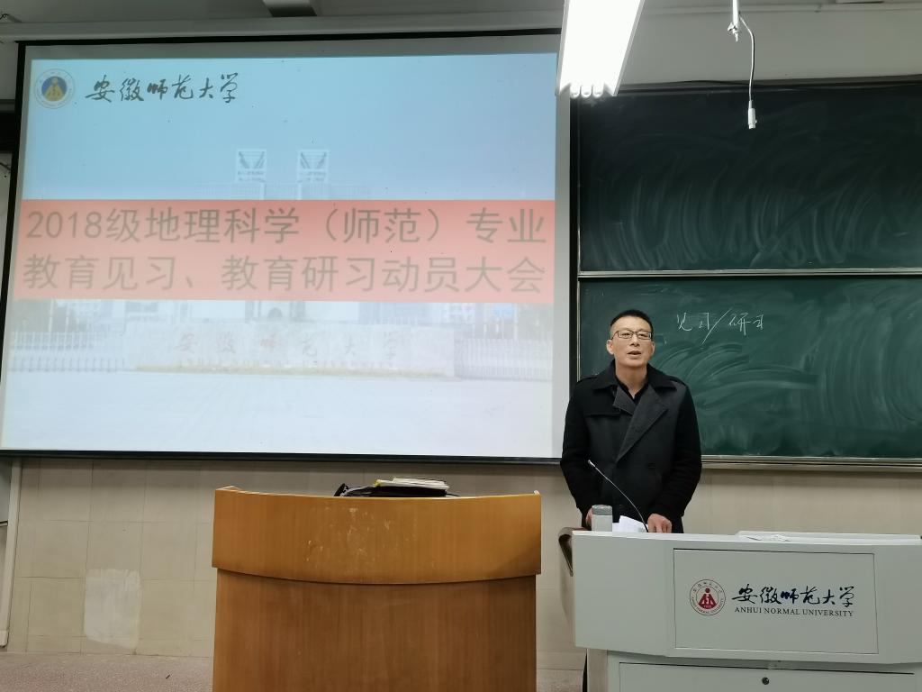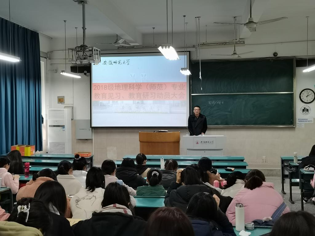 罗文菁 丁茹栩)为了充分了解教育见习与研习的目的、内容与安排,11月27号下午2点于教学楼2号楼102教室举行2018级地理科学(师范)专业教育见习、研习动员大会。此次会议由指导老师朱永恒主持,2018级地理科学师范专业全体成员参加。