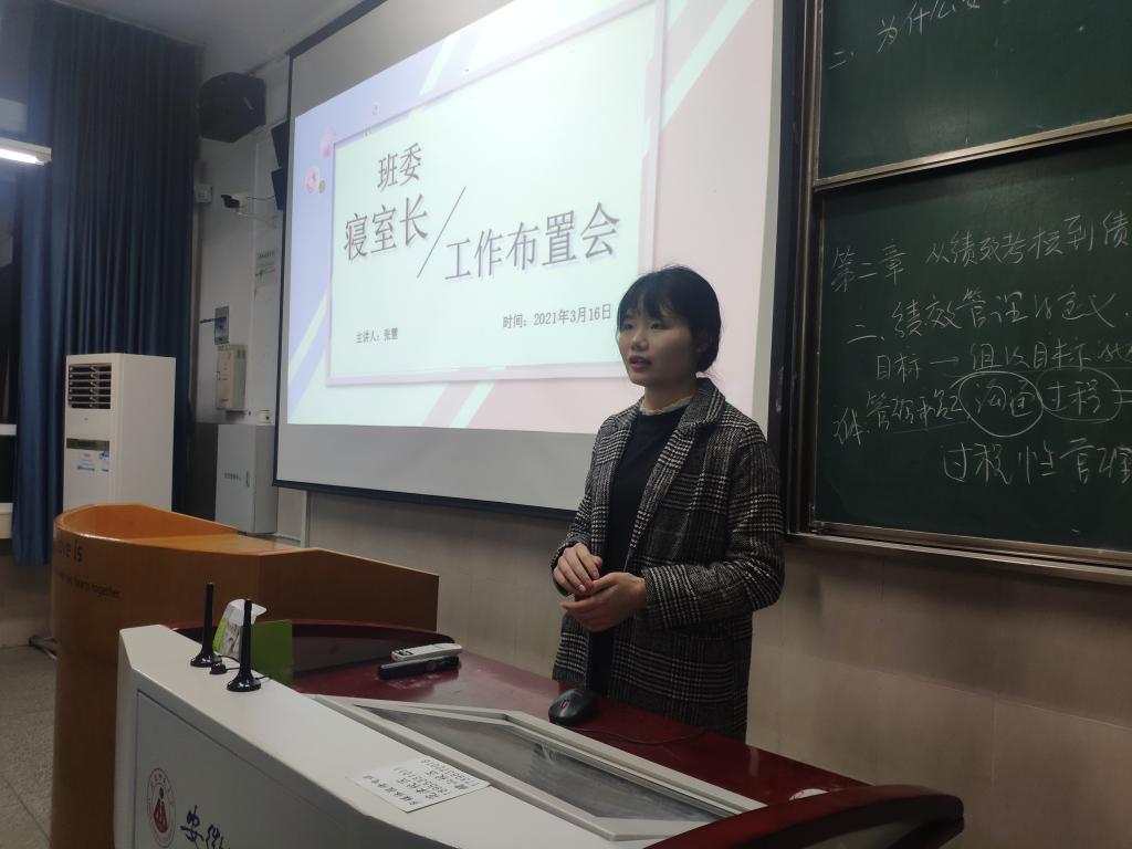 本网讯(张慧 潘爽 李娜)为加强劳动教育,培养劳动素养。2021年3月16日晚7点,2018级城乡规划专业和2018级地理科学(非师范)专业于行知楼2号楼202教室召开卫生安全主题班会暨班委寝室长工作布置会。会议由辅导员张慧主持,2018级城乡规划专业和2018级地理科学(非师范)专业全体同学参加。