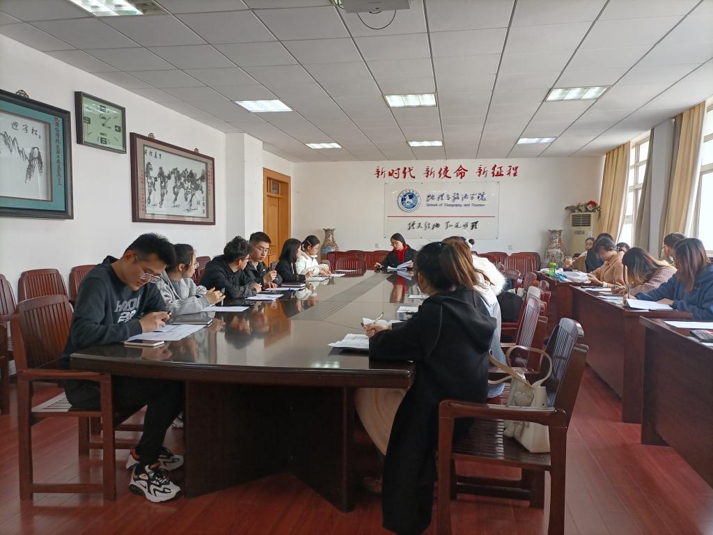 地信城规本科生党支部在学院行政楼三楼会议室召开2020年度组织生活会和开展民主评议党员,支部党员应到36人,8人请假,实到28人,会议由党支部书记彭媛媛主持。