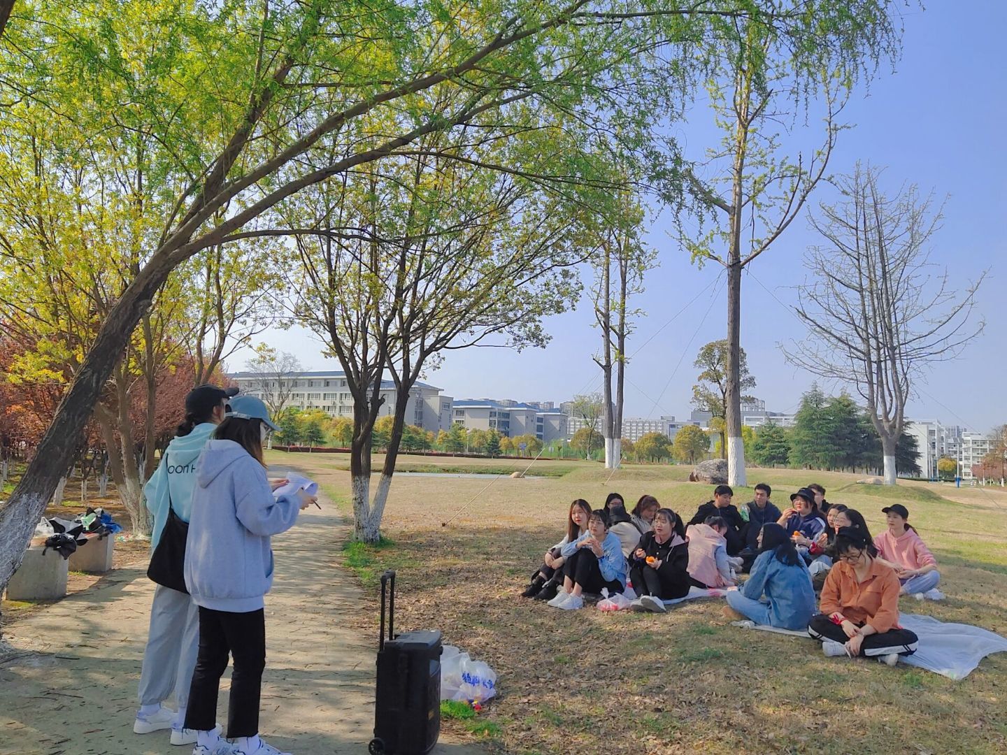 本网讯19酒管 尚子仪 徐倩)2021年3月26日寒雪梅中尽,春风柳上归。在一片草长莺飞中,全体19酒店管理专业学生在校南体桥旁开展了本学期第一次春野餐会,由组织委员姚旭、安全委员蔡明燕主持进行,辅导员徐倩到场参与指导。