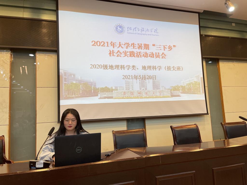 实验楼101教室召开暑期社会实践动员会,会议由地理科学类四班团支书张曼其主持,地理科学类、拔尖班全体同学参会。