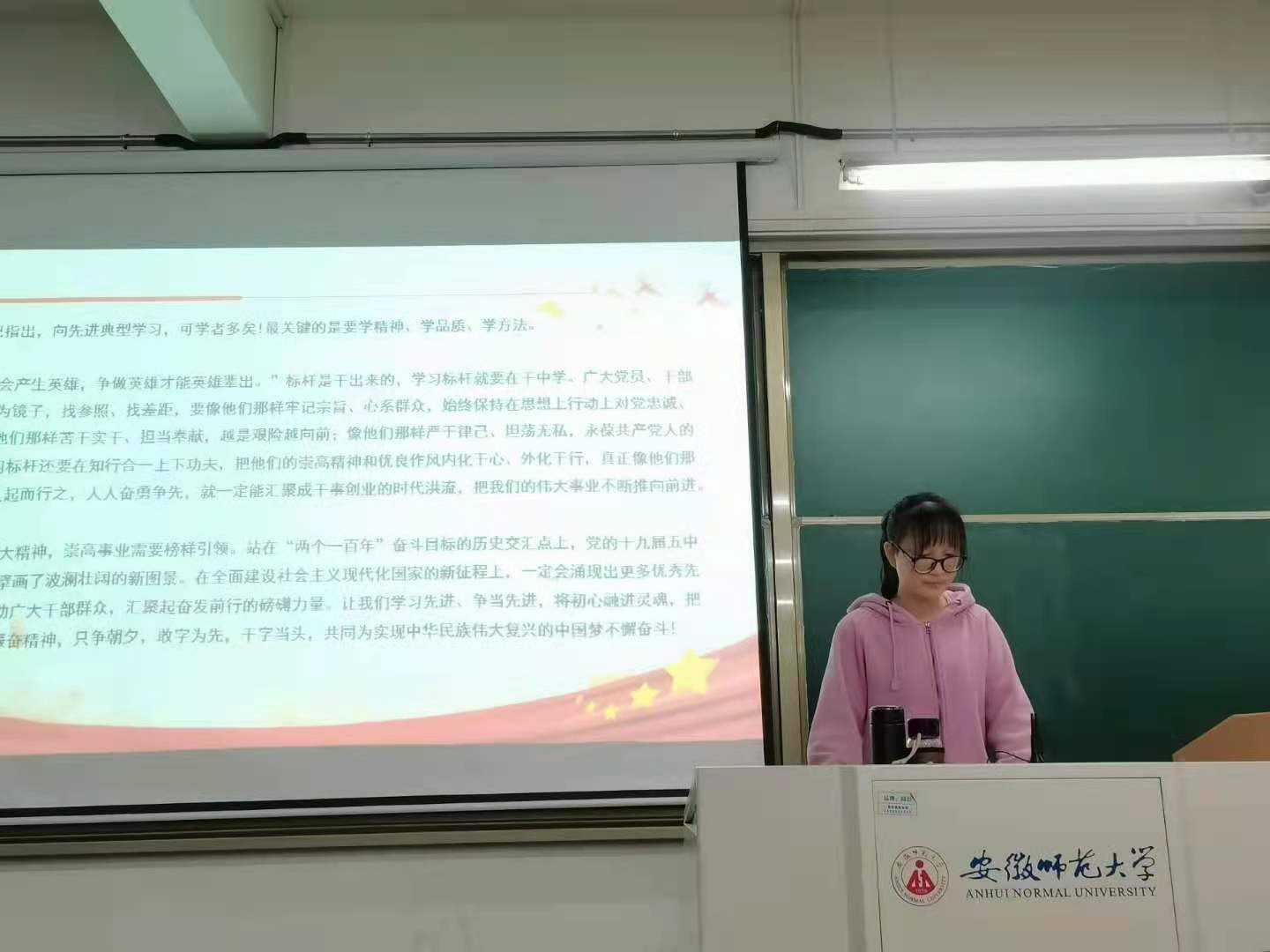 最后,徐嘉琪讲到:四位优秀的中国共产党员分别在不同历史时期为党和国家作出了巨大的历史贡献,都是我们应该学习的榜样。作为当代青年大学生,我们在平时就要加强党史学习教育,学习先进、争当先进,将初心融进灵魂,把使命扛在肩上,振奋精神,只争朝夕,敢字为先,干字当头,共同为实现中华民族伟大复兴的中国梦不懈奋斗!