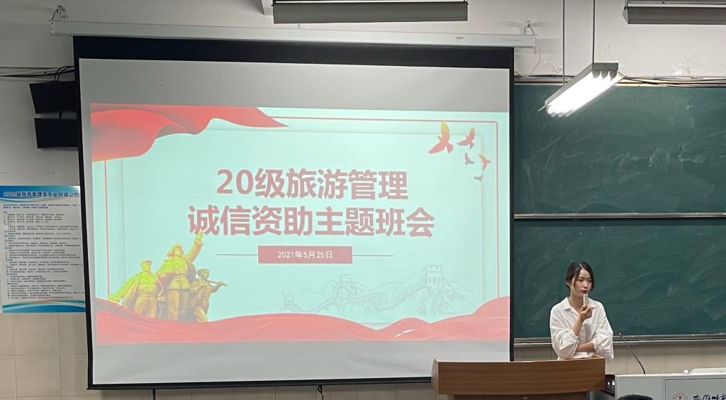 据悉,诚信育人一直都是学院非常重视的一项重要工作。辅导员赵佳慧希望20级旅游管理专业的同学们通过此次班会可以提高自己的诚信意识,做一个讲信、履信的新时代大学生。
