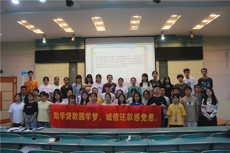 会议最后一项,“助学贷款圆学梦,诚信还款感党恩”签名合影留念。全体在场同学有序在横幅上签名,并合影留念。