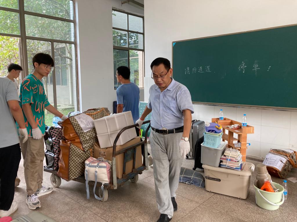 搬迁过程中,学院领导班子和专业教师成员加班加点,现场办公;走近学生,聆听需求;俯下身子,搬起行李;身体力行,以身示范。学院党委书记贾冠忠、院长苏勤、党委副书记乔静、分管副院长等人全程参与搬迁工作,每天早早地来到搬迁现场,指导搬迁工作,帮助学生运送行李;并在搬迁第一天陪同副校长彭凤莲走访学生宿舍,实地查看学生宿舍维修改造、调整后的情况,了解学生的诉求,研究解决问题。专业教师组成员结合本专业学生搬迁工作时间节点参与搬迁,或独自搬运、或与学生协作,即使汗流浃背也不停歇,领导和老师们利用搬迁空档与学生亲切交流,浓浓的师生情滋润着学生的心田。学院团委成立了志愿者团队,并组织倡导班级学生干部、党员同学早到校、走在前,发挥示范引领作用,为同学们提供托运行李、帮忙搬送、问题解答等全流程服务,志愿者们冲锋在前的热心帮扶减轻了同学们的搬迁负担,充分体现了地旅学子们团结友爱、互助奉献的精神风貌。