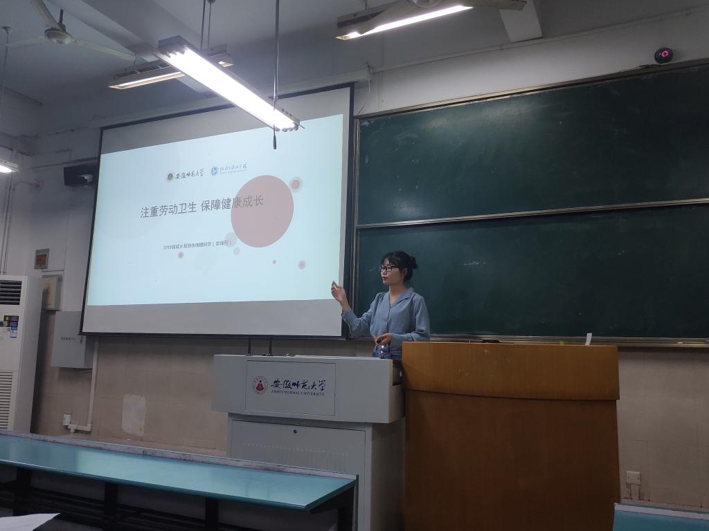 注重劳动卫生,保障健康成长。张慧介绍了劳动卫生与健康生活的紧密关系,分析了近期查寝发现的违规违纪和不文明的现象,讲解了学生手册中与之相关的校规校纪,提醒同学们认真学习相关内容、做到遵规守纪。她还向同学们讲述了秋季几大传染病:水痘、麻疹、肺结核、呼吸道传染病,强调了做好防护、积极锻炼。合理饮食、健康作息、监测健康、保持愉悦的重要性。