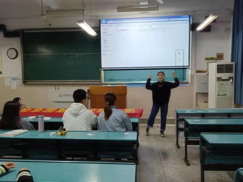 研讨会伊始,徐雨菲先是给大家介绍了此次团日主题的主要内容,号召同学们要深刻学习习近平总书记在庆祝中国共产党成立100周年大会上重要讲话精神,肩负起延续红色血脉和基因的神圣使命。紧接着阿丽吐和吐尔洪阿义两位同学为大家表演舞蹈《党旗飘扬的方向》,用旋律和舞姿表达了对党的热爱和敬仰,同时现场的气氛也被推向了高潮,活动最后徐雨菲带领同学们在“请党放心,强国有我”的横幅上依次签名,红色的话语,黑色的字体,有力的笔画,都印刻着同学们对党的庄严承诺。