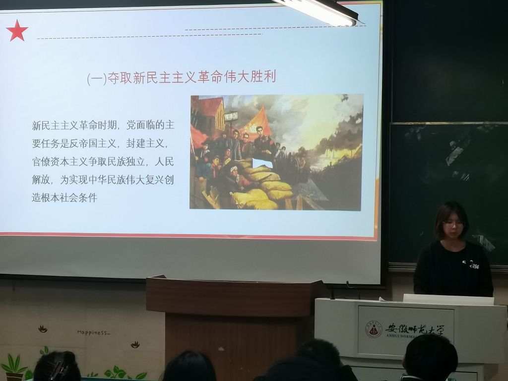 与会同学们通过PPT一起回顾学习了建党百年来的伟大历史成就,领会党的百年奋斗历史意义。夺取新民主主义革命伟大胜利,为实现中华民族伟大复兴创造根本社会条件;完成社会主义革命和推进社会主义建设,为实现中华民族伟大复兴奠定根本政治前提和制度基础;进行改革开放和社会主义现代化建设,使人民摆脱贫困,尽快富裕起来;开创中国特色社会主义新时代,朝着实现中华民族伟大复兴的宏伟目标继续前进。党的百年奋斗从根本上改变了中国人民的前途命运;党的百年奋斗开辟了实现中华民族伟大复兴的正确道路;党的百年奋斗深刻影响了世界历史进程。