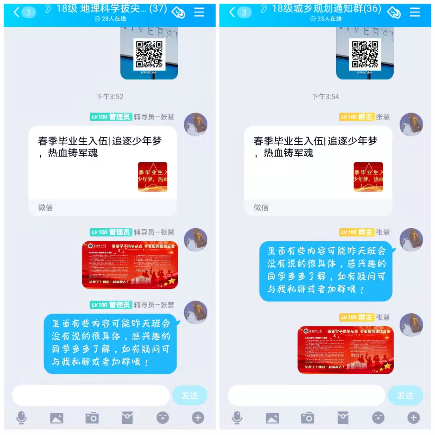 最后,张慧寄语全体同学,“有为青年立志从军,热血男儿精忠报国”、“身不得,男儿列,心却比,男儿烈”,希望班级同学在爱党爱国爱社会主义的同时,保持一颗上进心、求学心,懂得并敢于肩负时代责任,为祖国的繁荣富强和国防作出应有的贡献。