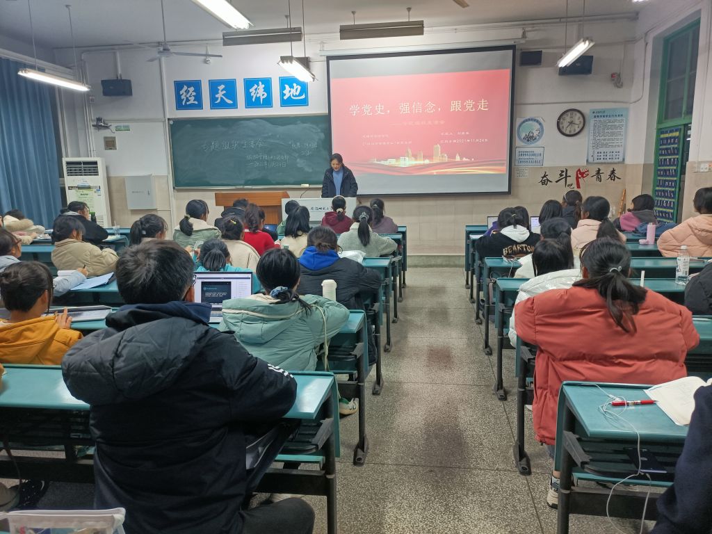 李炳臻)11月24日和25日晚,2021级旅游管理1班团支部在行知楼2040501教室召开“学党史 强信念 跟党走” 专题组织生活会暨2021年度团员教育评议工作。大会由班级团支书刘晨辰主持。