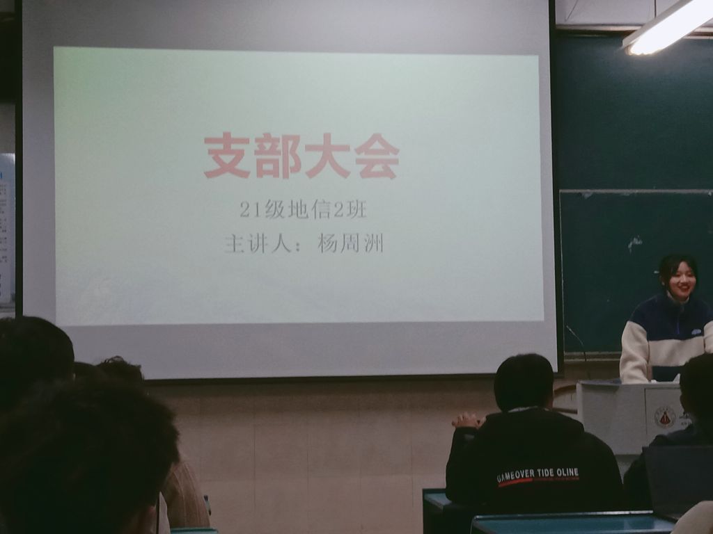胡珊珊)2021年11月28日晚19:30,2021级地理信息科学2班于行知楼4号楼303室开展团支部大会,会议由团支书杨周洲主持。