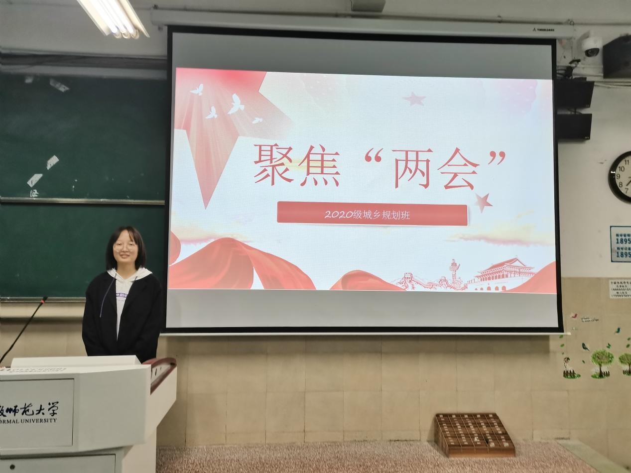 耿艺榕 刘少杰)为认真学习领会2022年全国“两会”精神,3月14日晚,2020级城乡规划专业1班开展 “聚焦两会”主题团日活动,活动由团支书徐嘉祺主持,2020级城乡规划专业1班全体同学参与。