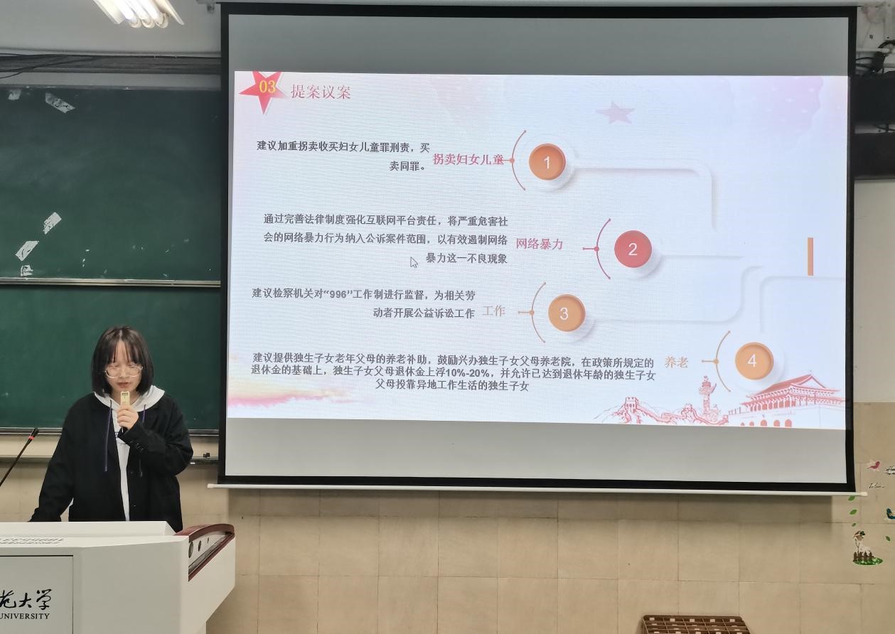 通过播放视频,徐嘉祺带领大家学习了对2022年全国“两会”的重要内容和重要意义的总结回顾,更加深入的领会2022年全国“两会”精神。最后,徐嘉祺呼吁大家:作为新时代中国青年,我们肩负着实现中华民族伟大复兴的历史使命,在日常学习生活中,我们要做到积极关心关注国家大事,积极行使基本权利,为把我国建设成富强民主文明和谐美丽的社会主义现代化强国不懈努力奋斗。