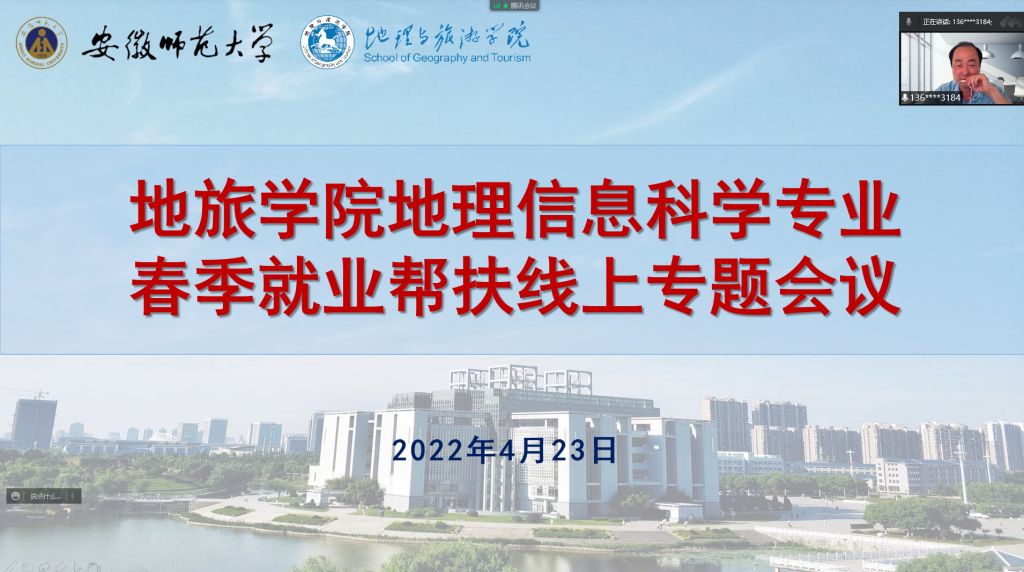 地理信息科学专业召开春季就业帮扶线上专题会议,学院党委书记贾冠忠、党委副书记乔静、副院长曹卫东、地理信息科学专业全体教师及辅导员彭媛媛参加了此次会议。会议由地理信息科学专业负责人汪左主持。