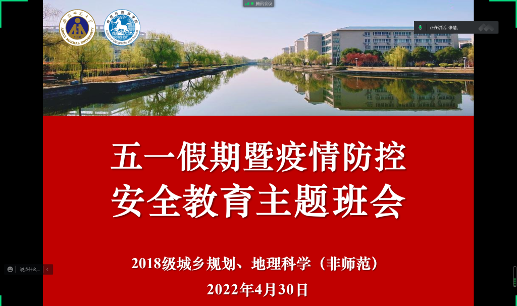(本网讯 张慧)在五一劳动节即将到来之际,2018级城乡规划、地理科学(非师范)专业召开五一假期安全主题班会暨就业指导交流会。会议由辅导员张慧主持。