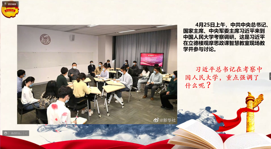 刘少杰 耿艺榕) 为深入学习贯彻习近平总书记考察中国人民大学重要讲话精神,4月29日晚,2020级城乡规划、土地资源管理专业举行“习近平总书记考察中国人民大学重要讲话精神” 线上学习会。本次会议由辅导员刘少杰主持,20级城乡规划、土地资源管理专业全体同学参与。