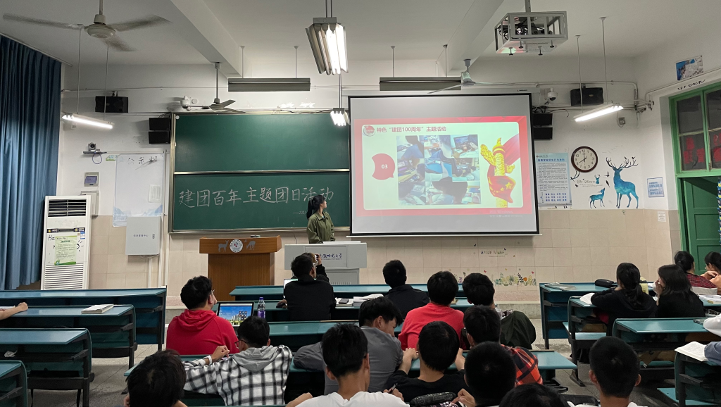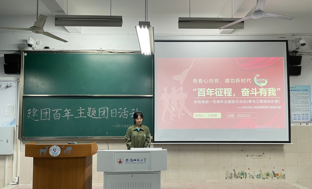 赖姝媛)百年建团铸辉煌,初心如磐向未来。为庆祝中国共产主义青年团成立100周年,激昂青春奋斗,追寻信仰之光,5月9日晚,2021级土地资源管理专业在行知楼2040202举行“百年征程,奋斗有我”主题团日活动。本次会议由团支书王凱鐸主持。