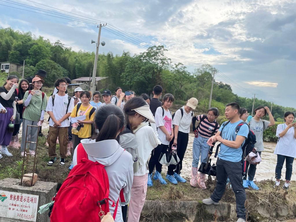 6月5日早晨,由于雨势过大,同学们在大巴车上开展实习工作复习小结,指导教师耐心解答同学们有关实习任务的疑问,学习氛围浓郁。待雨过天晴,同学们按照分组分别前往相应地点,进行实地勘测,调查分析。各小组在进行仪器使用培训与初步确立调查路线后,走丘陵、看水田、攀陡坡、望水库、采土样、析土质、走访居民调查社会经济发展情况……体会到野外实习的不易与艰辛,也更加了解平时在书本中学习到的知识,在实习过程中,两位老师保持与各小组成员的联系,以确保同学们的人身安全,同时也耐心为同学们进行实习指导与问题详解,指出同学们的不足之处并协助其进行改进。各小组成员始终保持高昂的精神状态,团结协助,齐头并进,研讨问题,积极分析,增进了同学们的交流与合作,促进了同学们的情谊。