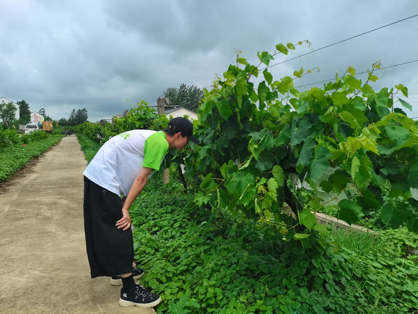 中午稍作休息后,团队集合前往小岗葡萄示范园,对当地葡萄种植规模、品种和长势进行调查,示范园的种植人员向队员们详细介绍了葡萄园的基本情况和葡萄种植的相关知识。随后团队前往小岗村的周边进行观察,初步了解了当地的地势、地形以及地质。