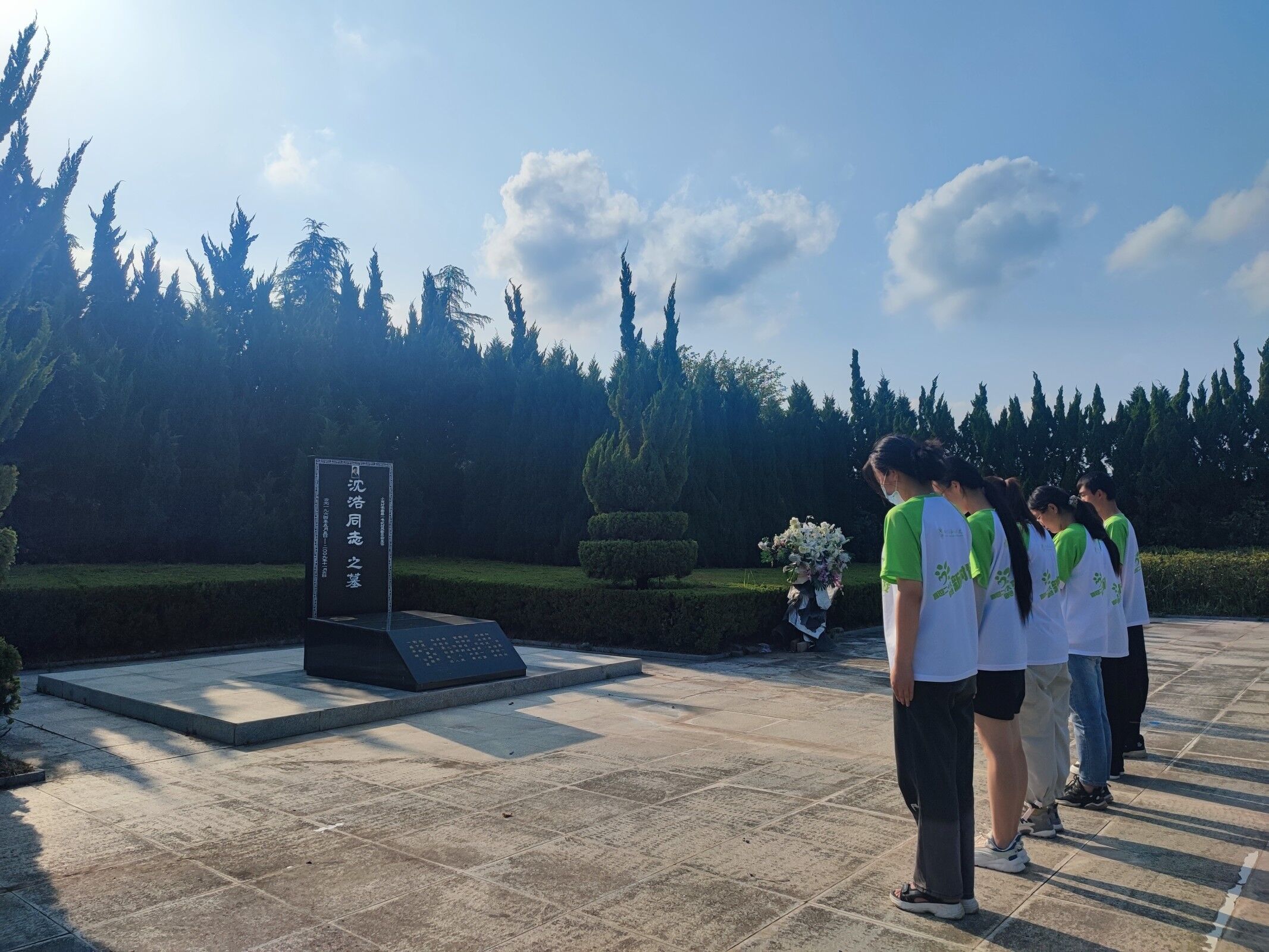 带着对小岗村大包干的精彩回味,团队继续向前进,来到了今天行程的第三站,沈浩同志之墓,面对沈浩同志的墓碑,一股敬畏之情油然而生,故队员们自发地在墓前默哀,向我们默默奉献的平凡而又伟大的人民英雄致敬。
