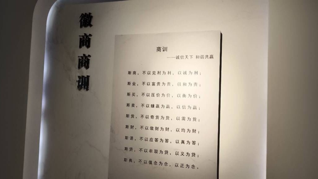 第二站来到徽商百杰人物馆。馆内墙壁上设有徽商百杰人物谱,记录着曾经在徽商历史上叱咤风云的人物。透过玻璃展柜可以看到很多载有徽商历史的书籍资料。通过这些资料,成员们脑海里徽商的形象逐渐具体可感起来。