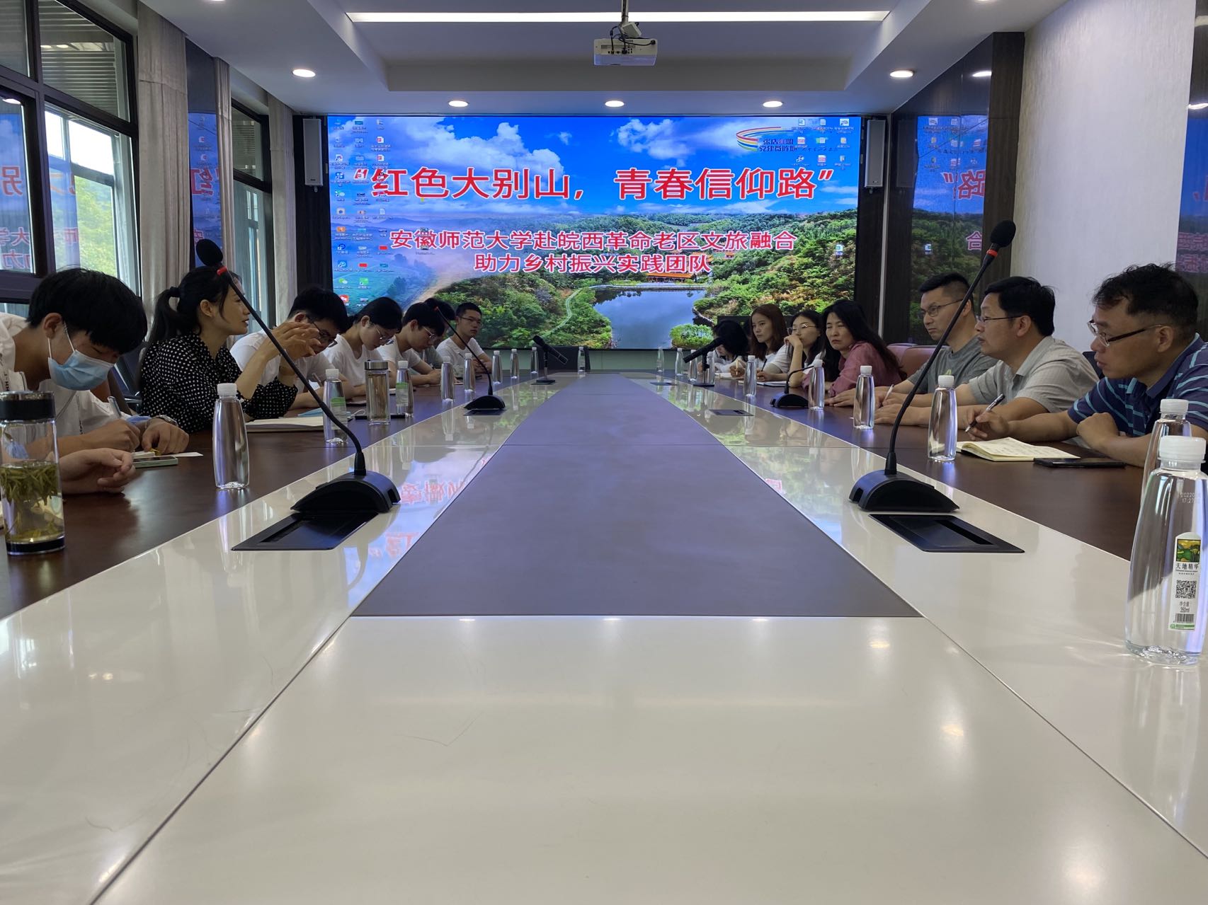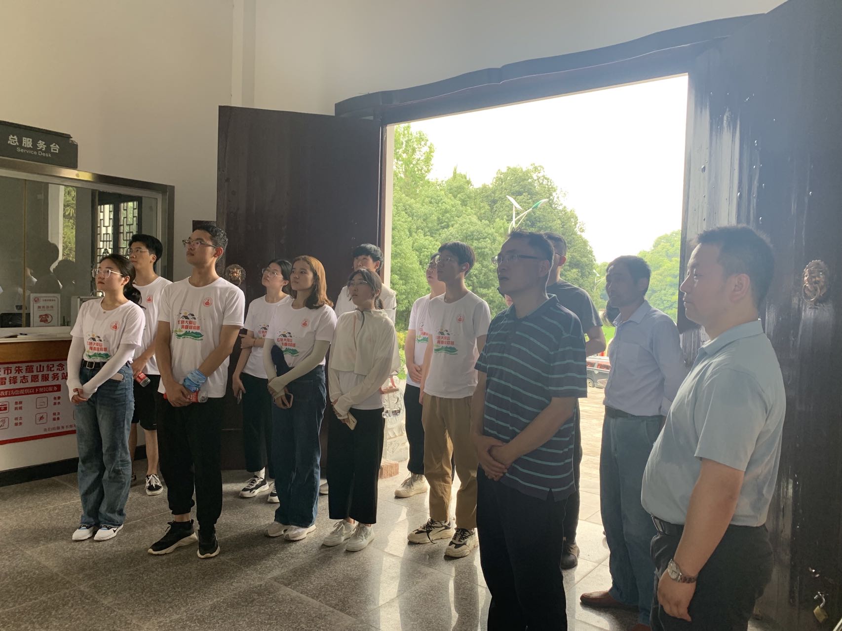 今天的调研与以往不同的是在队员们漫步峡谷的时候,老师们在有粉丝村之称的唐墩村进行调研,在午饭后队员们与老师成功会和,在一起前往九月山庄的路上团队与大别山石窟龙潭河水库擦肩而过,纵使只有一眼,也令人流年忘返。在九月山庄调研以后,团队成员又前往了双蟾寺和朱蕴山纪念馆。