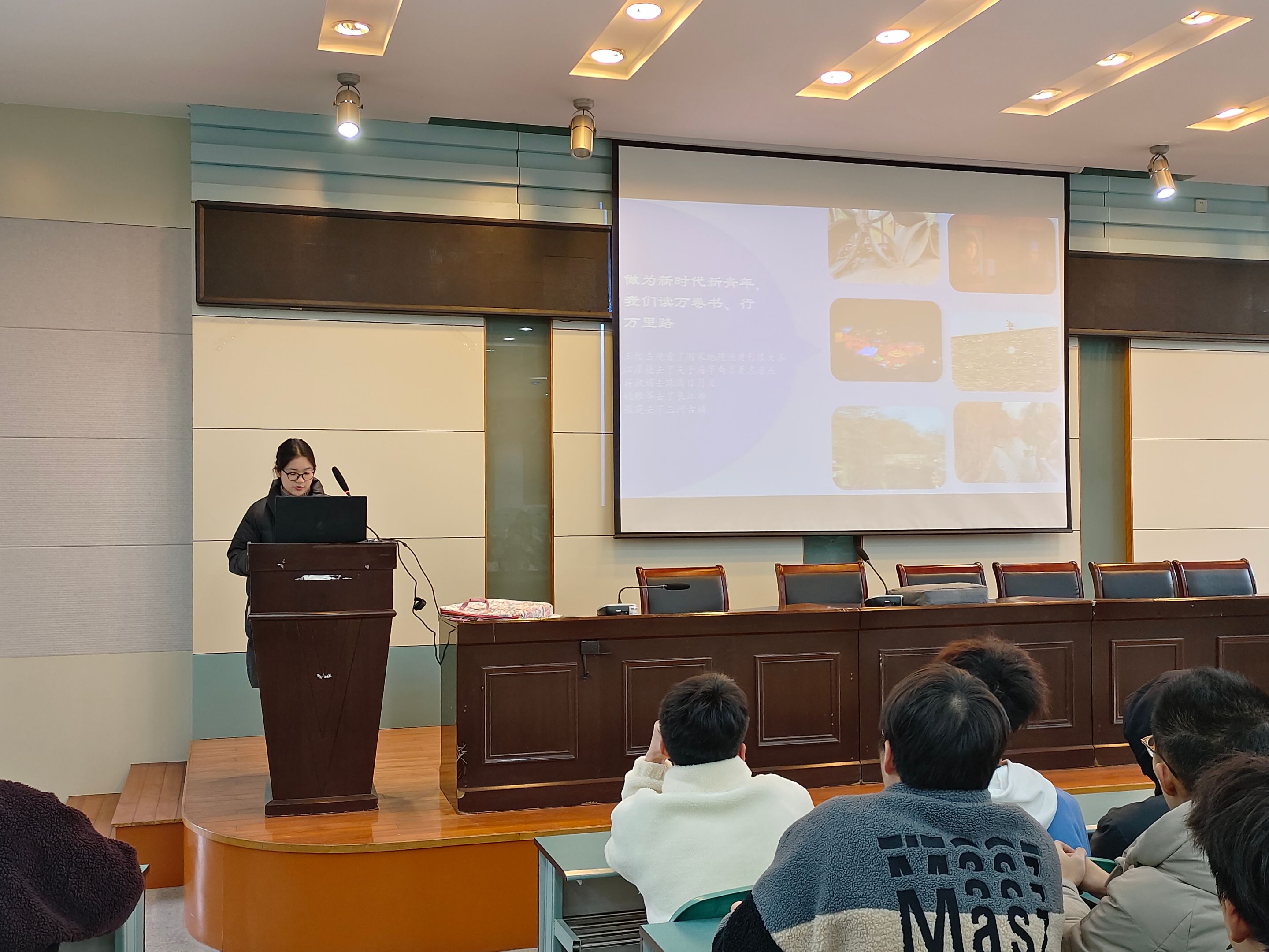 本网讯(魏语菲、陈祥云)2月24日下午,2022级地理信息科学专业一班在实验楼101报告厅开展“青春践行二十大”主题班会暨“我的暖冬故事”寒假社会实践分享会。辅导员陈祥云、2022级地理信息科学一班全体同学参与。