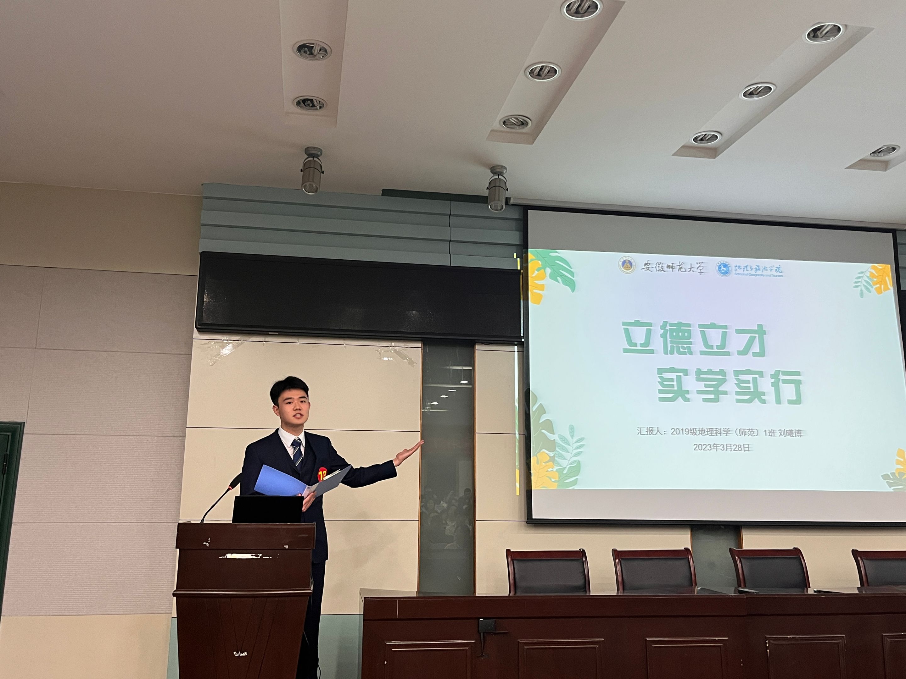 为深入学习宣传贯彻习近平新时代中国特色社会主义思想,全面贯彻落实党的二十大精神,进一步弘扬社会主义核心价值观,充分发挥青年典型模范带头作用, 3月28日晚,地理与旅游学院在实验楼101报告厅举行第十八届“地旅之星”十佳大学生暨“自强之星”评选活动。学院党委副书记付勇,地理科学专业负责人朱永恒,地理信息科学专业负责人宋立生,土地资源管理专业教师梁栋栋,旅游管理专业教师阮陵,城乡规划专业教师姚景艳,以及各专业辅导员老师代表出席活动并担任评委,各班学生代表现场聆听并参与评审。