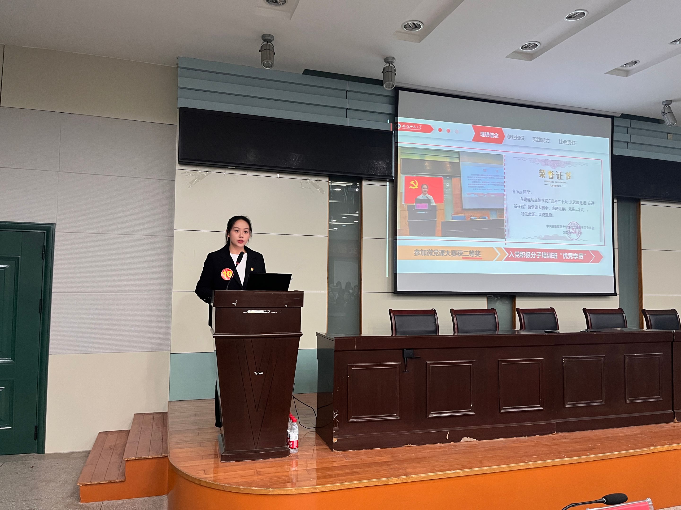 会议伊始,主持人简要介绍本届活动评选情况、评选环节以及评选要求。经过班团支部推荐参选,共有25名来自全院各年级各专业的学生脱颖而出,进入最终的评比汇报环节,参评学生按序上台汇报演讲,以PPT形式全方位展示个人事迹和荣誉。