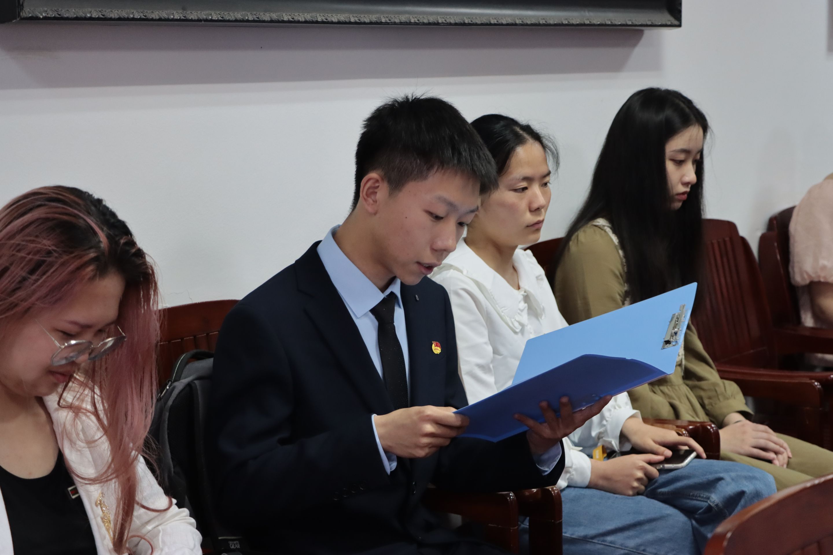 在行政楼三楼会议室开展“学思想,跟党走”五四青年节主题团日活动。学院党委团委副书记韦银艳、吴文涵,专兼职辅导员代表以及学院团委、学生会、社团学生骨干代表参加此次活动。