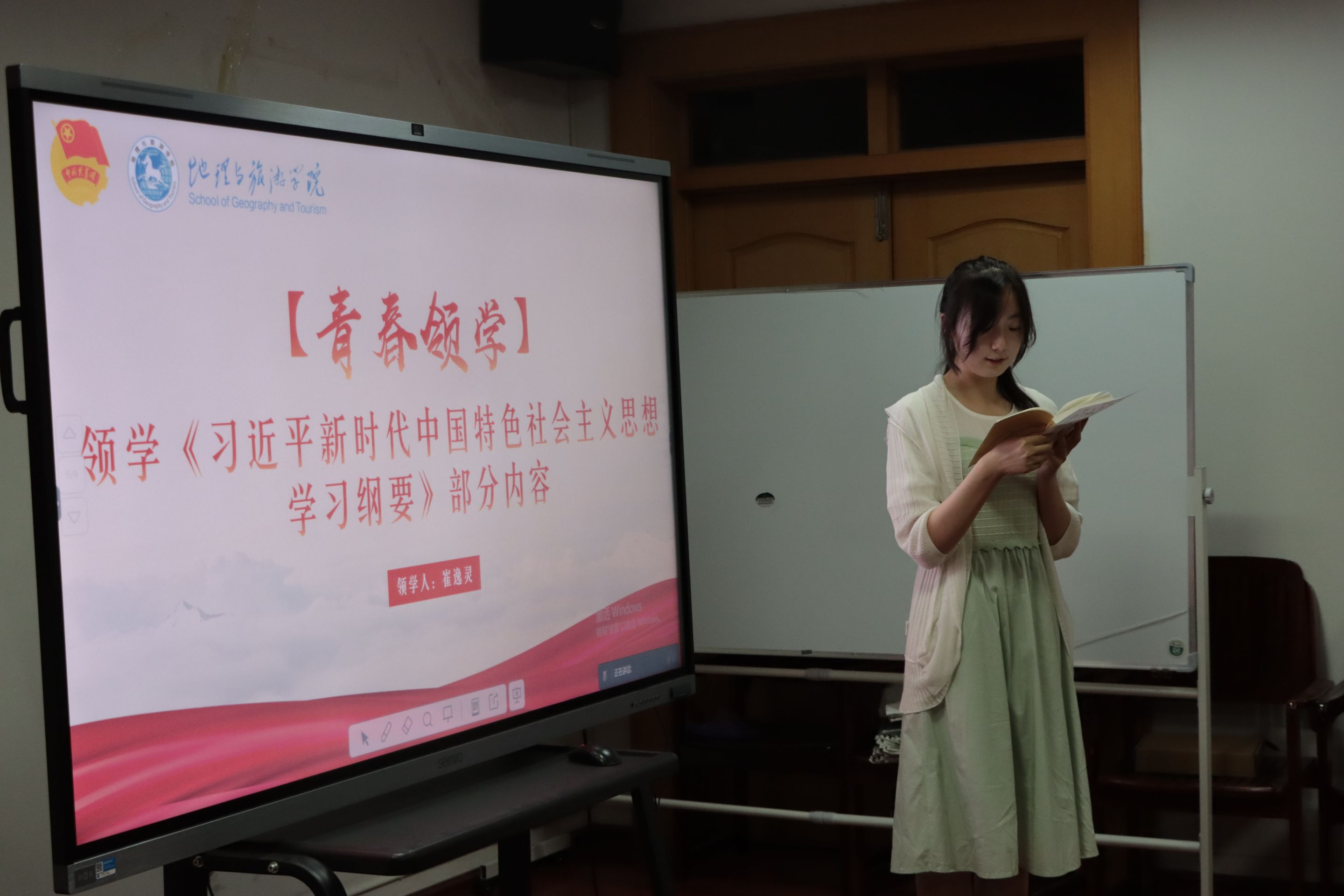为引导青年学生增强历史责任感和时代使命感,2021级地理信息科学专业姚兰带领同学们深入学习领会《习近平著作选读》第二卷部分内容,深刻认识“以史为鉴,开创未来,埋头苦干,勇毅前行”的重要要求;2022级地理信息科学专业崔逸灵带领大家学习领会《习近平新时代中国特色社会主义思想学习纲要》中“两个确立”的决定性意义;2022级土地资源管理专业张岳城带领大家学习了习近平总书记在五四青年节到来之际写给中国农业大学科技小院的学生回信内容,领会习近平总书记对新新时代青年“厚植爱农情怀练就兴农本领,在乡村振兴的大舞台上建功立业”的殷殷寄语。