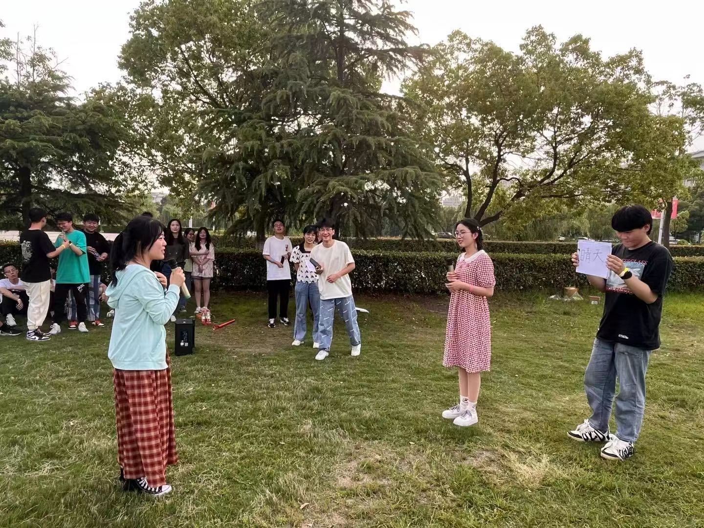顾冉介绍了活动流程与活动目的:庆祝五四青年节,学习新思想,丰富学生文娱生活、增强班级凝聚力、展现班级风采.夏心雨向同学们普及了五四青年节的相关知识,并对“五四精神的核心内容”进行了提问和介绍,呼吁同学们继续发扬五四精神,不负人民、不负时代。余忻怿演唱了红歌《如愿》,歌声优美、情感丰富,让人满怀激情,同学们在歌声中感受到了青春力量。活动中,班级同学分成四个小组进行了团队比拼。《听歌识曲》、《你说我猜》、《长腿接力赛》等紧张刺激的团队游戏与齐舞《青春向未来》等精彩纷呈的歌舞表演相互穿插,趣味横生的同时,也展现了同学们的蓬勃向上的精神风貌。