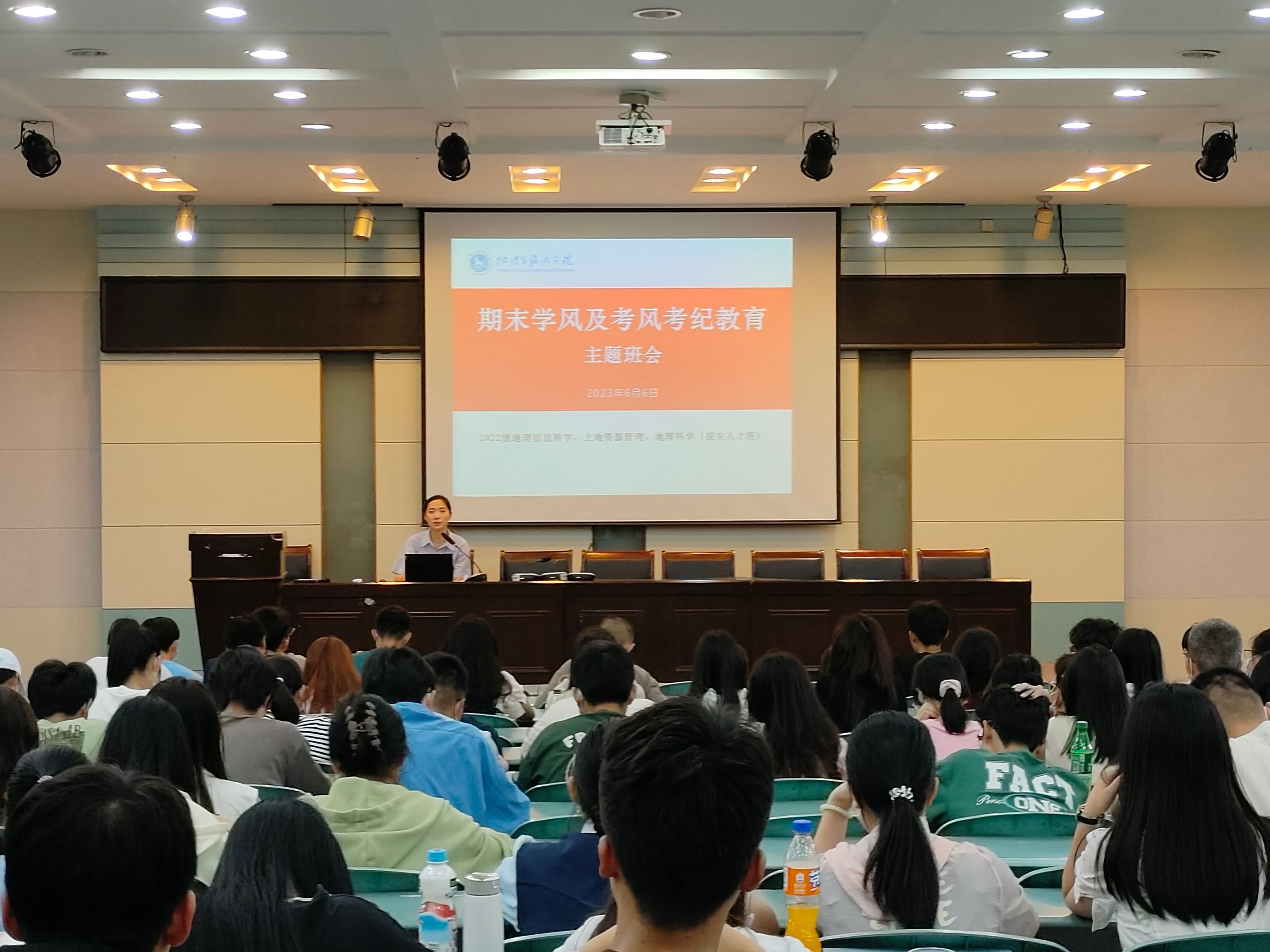 实验楼101报告厅开展期末学风考风暨安全教育主题班会。班会由辅导员陈祥云主持,三个专业全体同学参与。