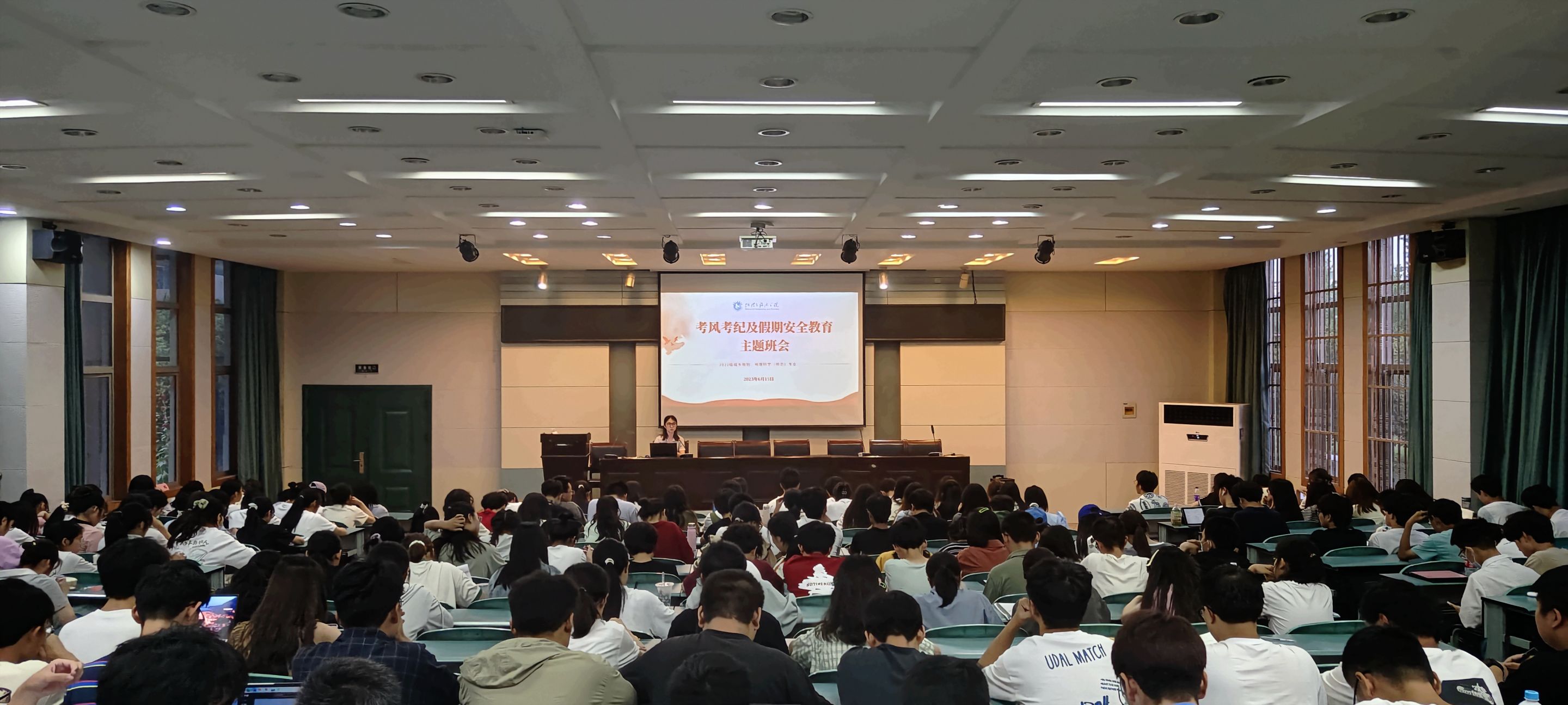 101报告厅召开考风考纪及假期安全教育主题班会,全体同学参加,班会由辅导员操晶晶主持。