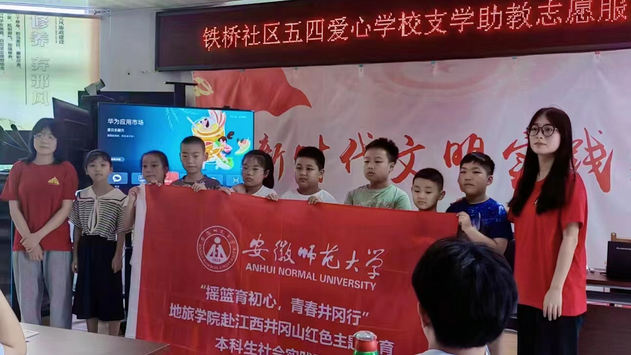 赴江西井冈山“摇篮育初心,青春井冈行”实践团队来到芜湖市铁桥社区,对社区内小学生进行井冈山精神宣讲,重点讲述了建党起源和伟大建党精神,激发社区小学生的爱国热情和民族精神。