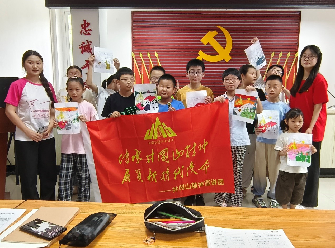 赴江西井冈山“摇篮育初心,青春井冈行”实践团队于7月3日上午到达芜湖市弋江嘉园社区,对社区内小学生进行井冈山精神宣讲,接续井冈山精神内涵和历史的宣讲之旅。