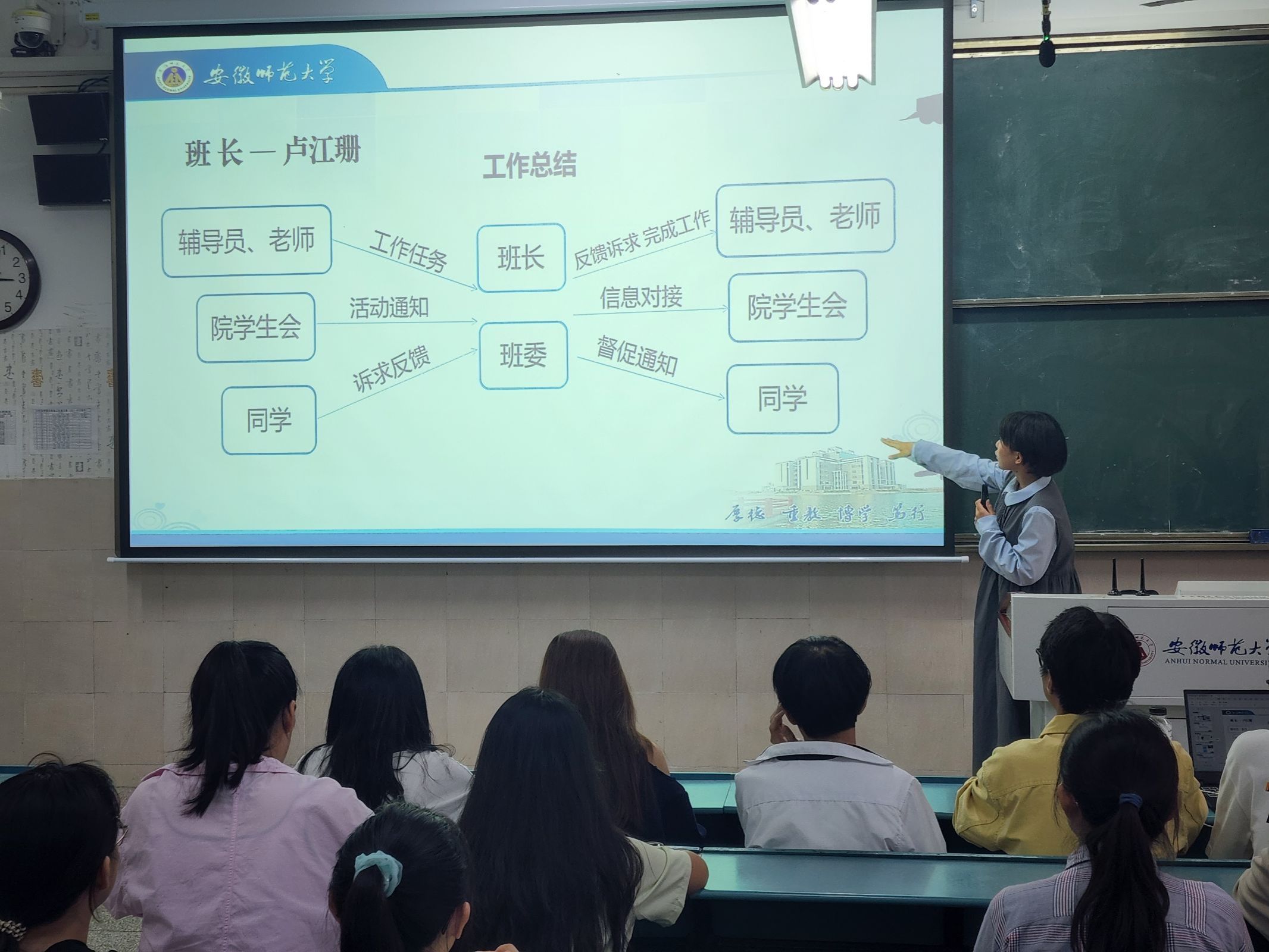 会上,还举行了新一届的班委竞选。同学们踊跃竞争,有的用PPT展示个人风采,有的用视频展示个人才能,现场活动氛围紧张活跃。最后根据全班同学的匿名投票,确定了12名班委,班委换届大会成功落下了帷幕。