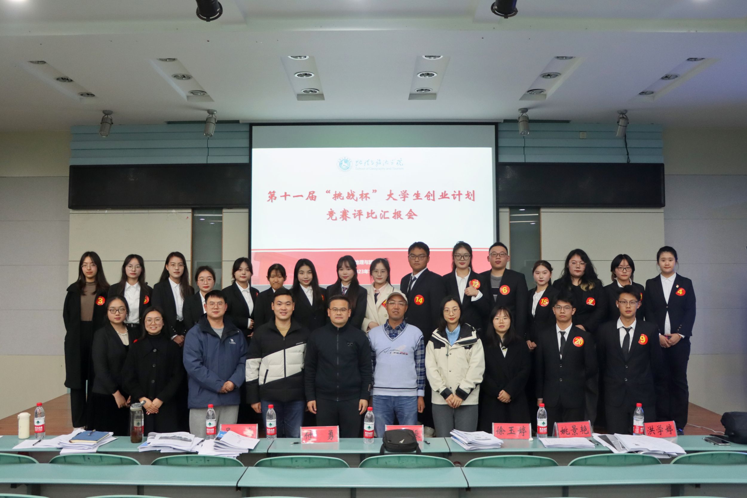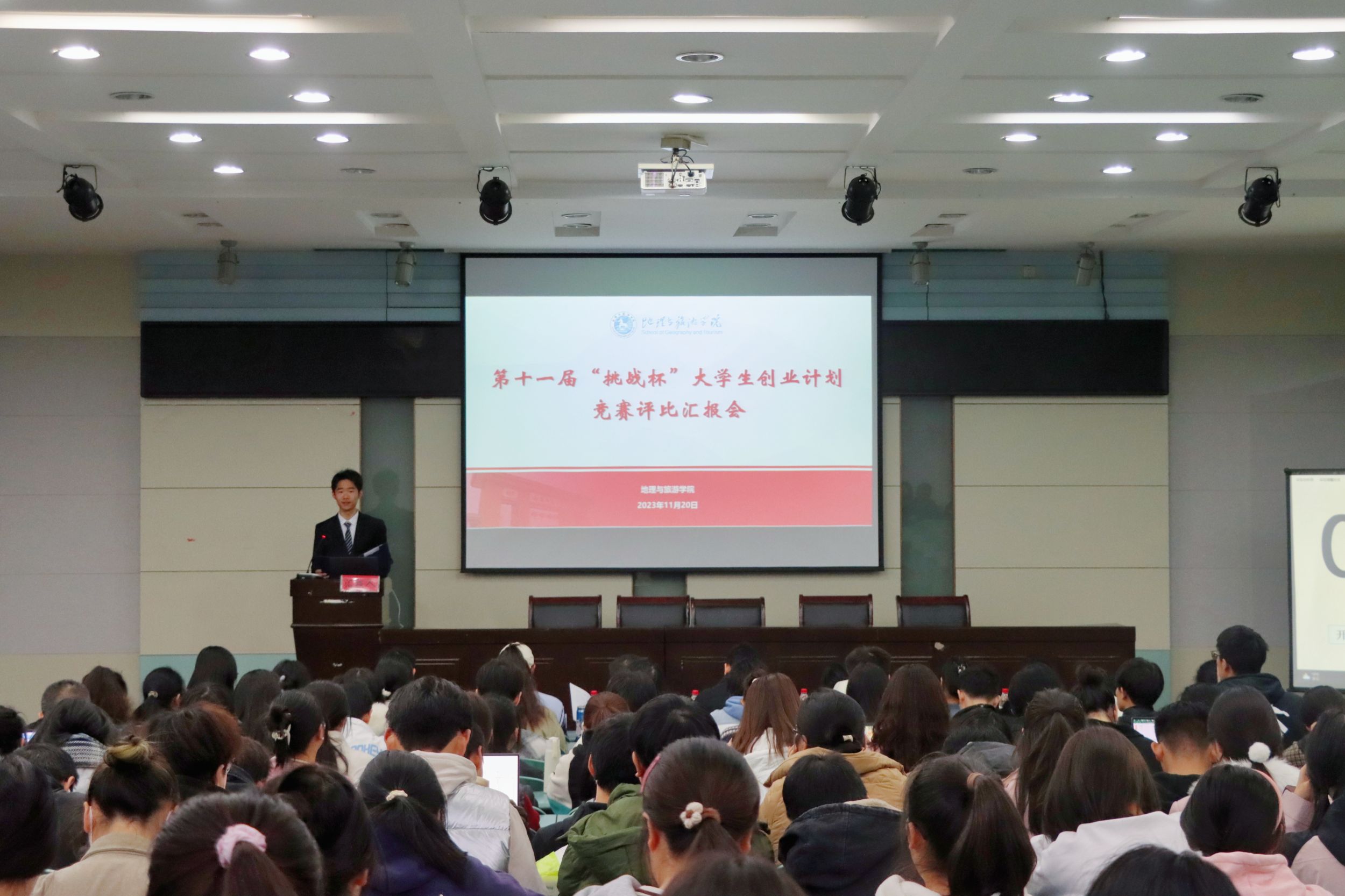 在学院实验楼101报告厅举办第十一届“挑战杯”大学生创业计划竞赛评比汇报会。院党委副书记付勇、校团委素拓部科长王申振,地理科学专业教师吴立、土地资源管理专业教师徐玉婷、城乡规划专业教师姚景艳、地理信息科学专业教师卓伟、旅游管理专业教师洪学婷出席活动并担任现场评委。此外,来自不同年级专业的学生到场学习观摩。活动由2021级地理科学(拔尖班)专业蔡子坤主持。