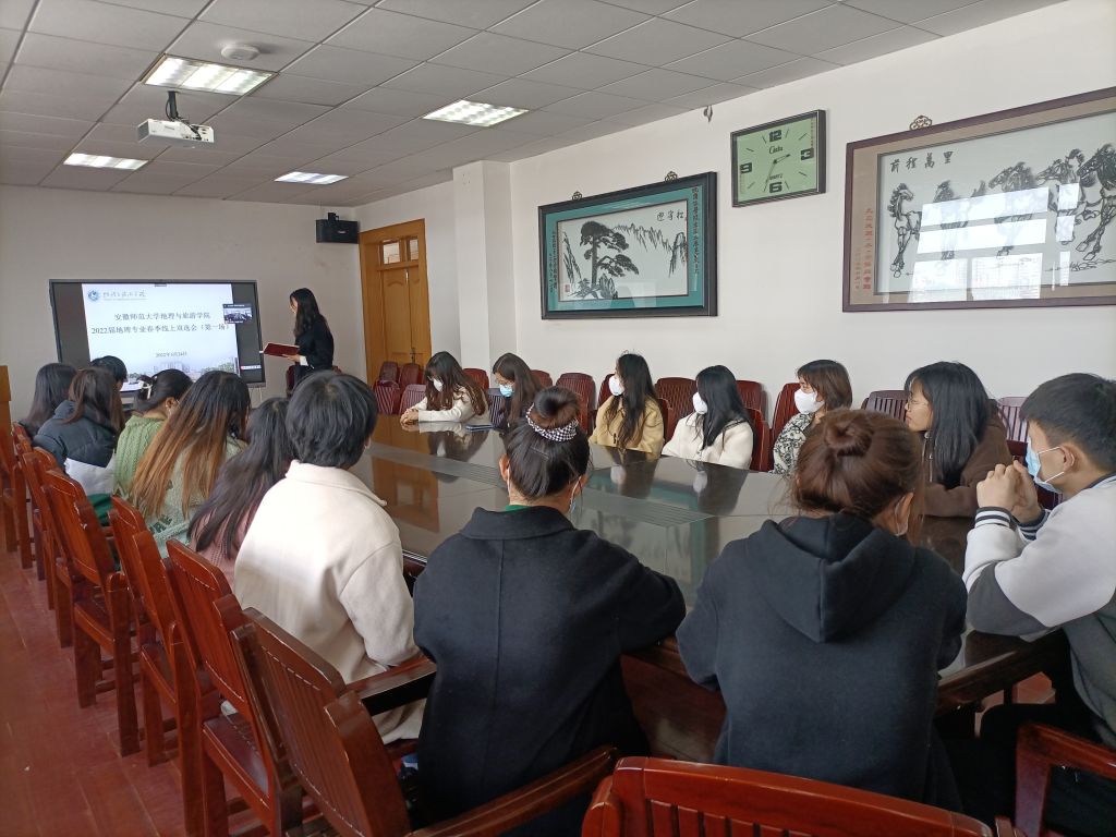 组织地理科学等专业开展春季“线上+线下”招聘双选会,本次会议采取企业线上宣讲,学生线下线上参会模式,会议由毕业班辅导员丁茹栩主持。