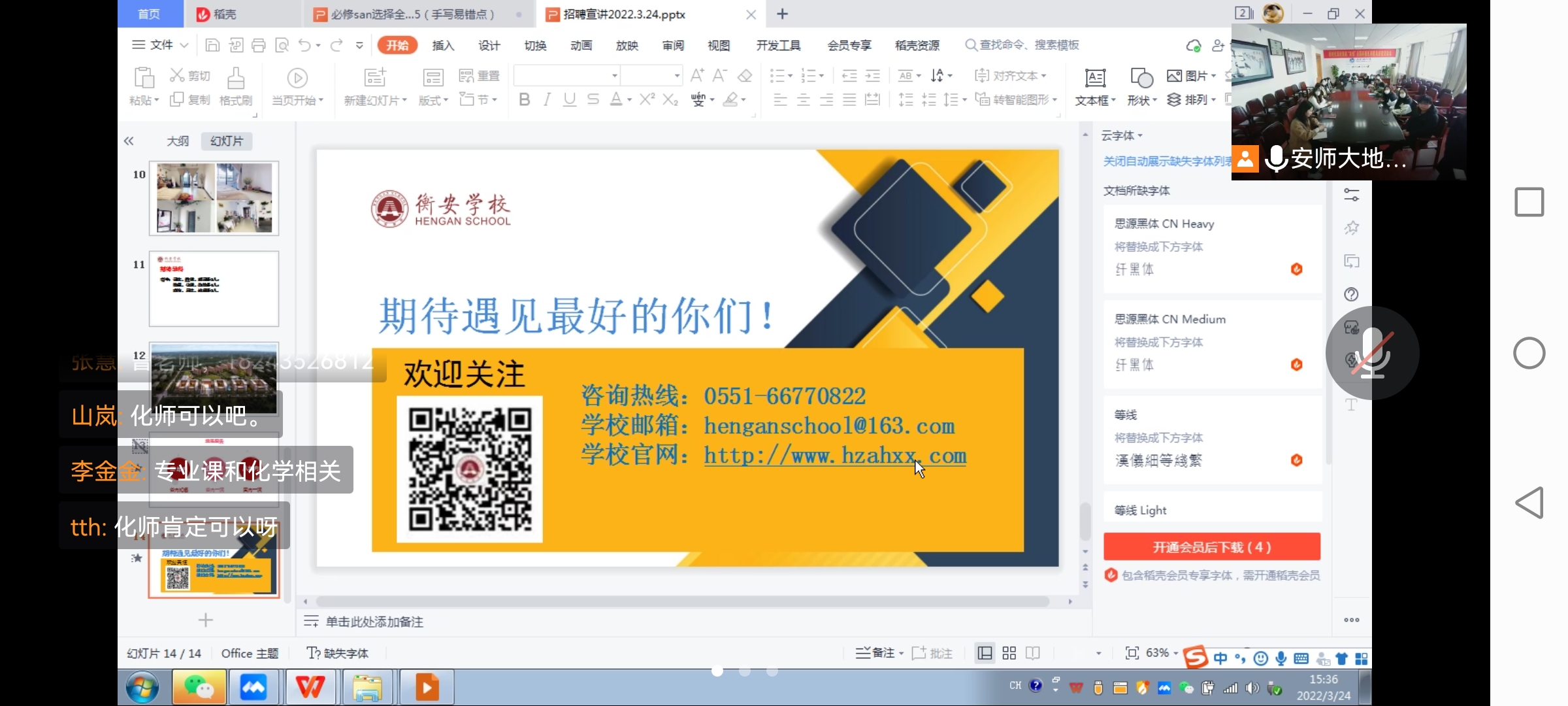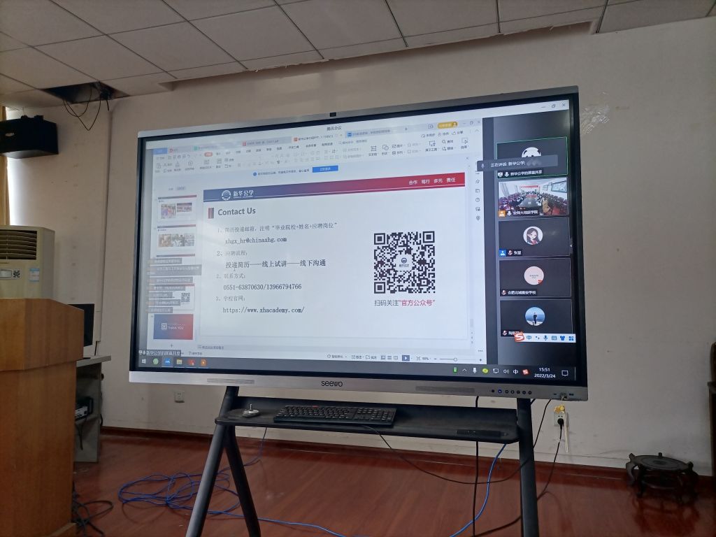 会议开始,丁茹栩首先对参与本次线上宣讲会的合肥新华公学、合肥北城衡安中学、蚌埠禹王中学、北大培文蚌埠实验中学等用人单位表示热烈欢迎和诚挚感谢。受目前疫情影响,毕业生求职、用人单位招聘均受一定影响,通过互联网媒介,开展线上宣讲招聘,使得毕业生和用人单位出现双赢局面。同时丁茹栩对本场参会的毕业生表示欢迎,希望同学们认真聆听宣讲,抓住就业机遇。