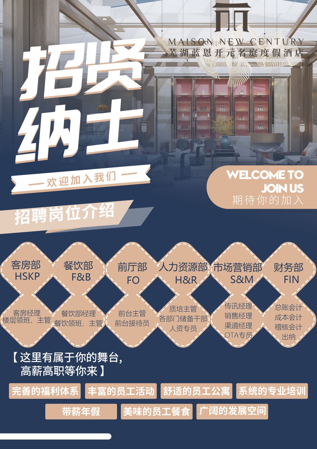 芜湖蓝恩开元名庭度假酒店招聘简章