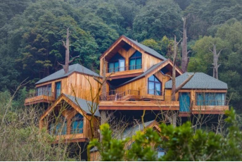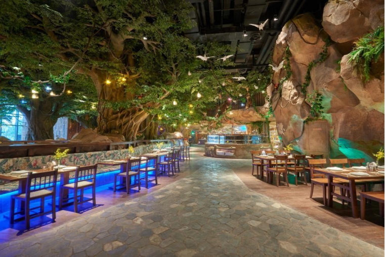 乐园拥有 174 间度假酒店客房和散落林中的 246 间特色度假屋。更有星空房、城堡房、树屋等网红特色度假屋坐落于此。同时提供了 25000 平方米