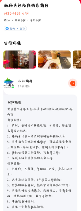 上海山江湖海酒店管理有限公司招聘简章招聘岗位:酒店前台招聘人数:若干人电话:58同城线上申请
