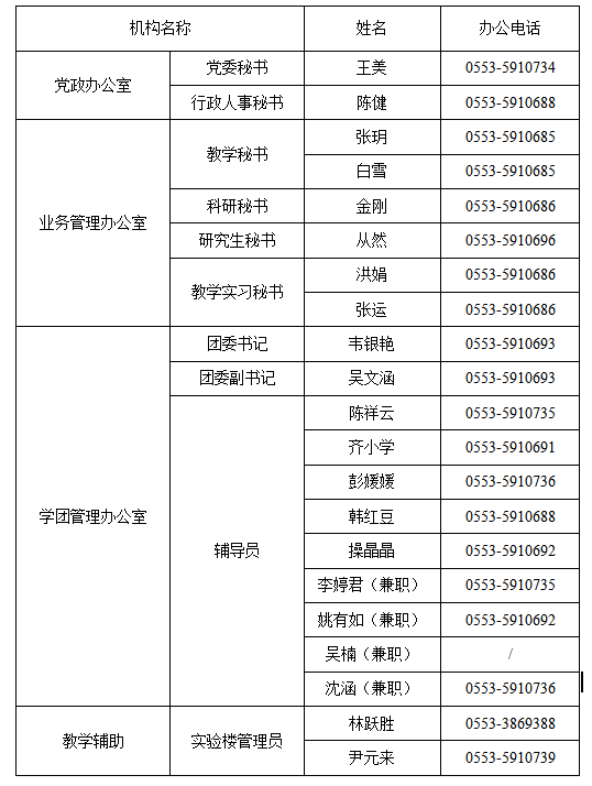 党委副书记、院长 | 方凤满 | 0553-5910731 |